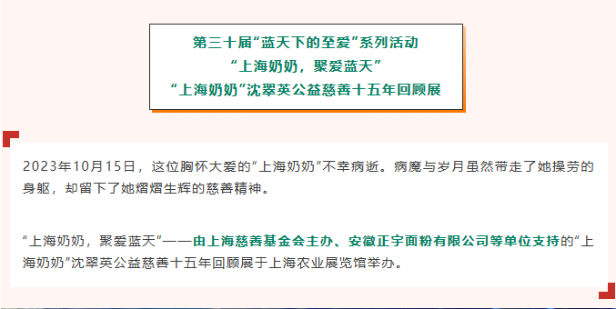 公益熱點 | 安徽正宇面業(yè)出席“上海奶奶”沈翠英公益慈善十五周年回顧展
