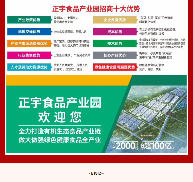 最后,渦陽縣委常委、副縣長蘇凱、經開區黨工委委員、管委會副主任孟亞飛一行對正宇集團“雙招雙引”“以商招商”的顯著成果表示了肯定,對正宇食品產業園的發展寄予了厚望!