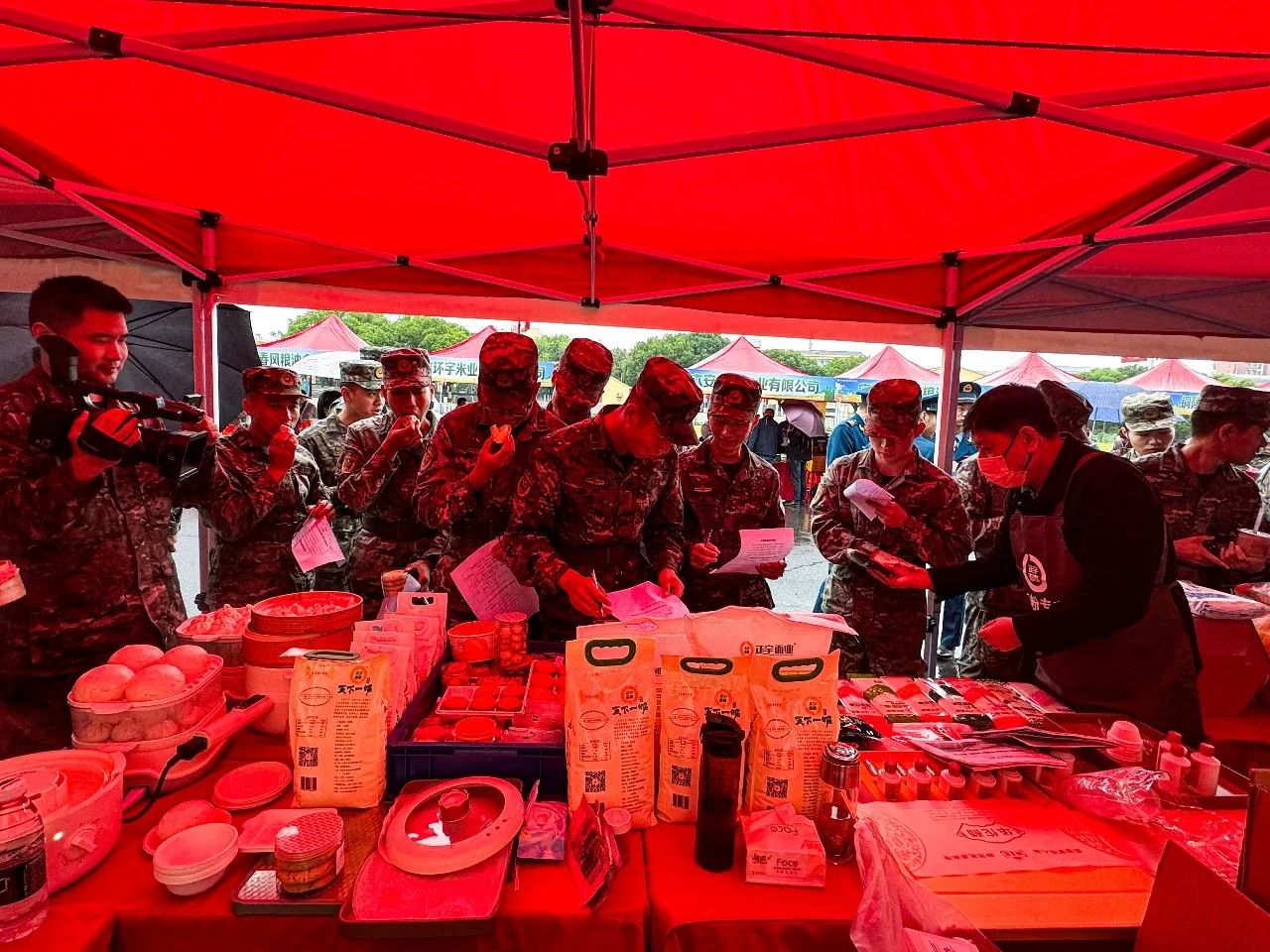 正宇集團展臺前人頭攢動,人民子弟兵們紛紛前來參觀正宇集團獨具特色的富硒面粉、本草醋、非油炸方便食品等產品。同時在品鑒了現場蒸制的包點、餃子之后贊不絕口,對產品的品質、口味等給予了極高的評價。
