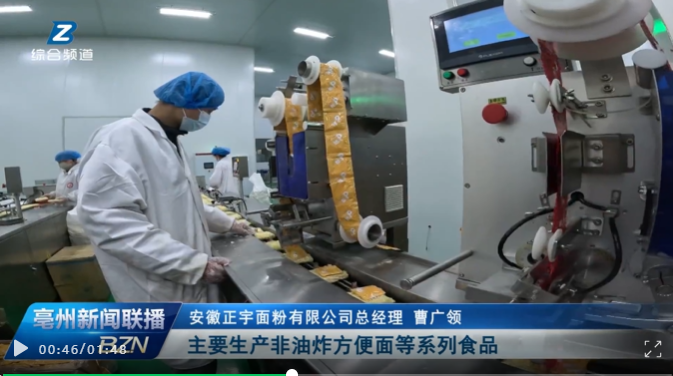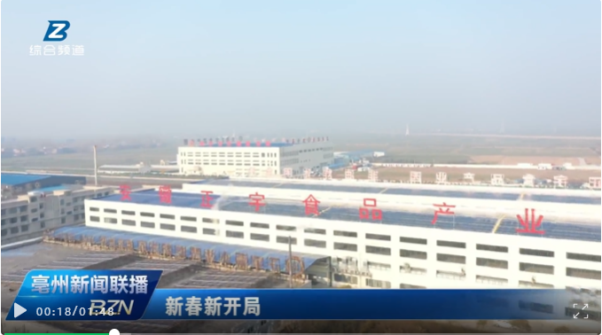 近日, 亳州電視臺《亳州新聞聯播》欄目頭條報道——新春新開局,渦陽:開足馬力沖刺首季“開門紅”!欄目對安徽正宇集團食品產業園進行報道。