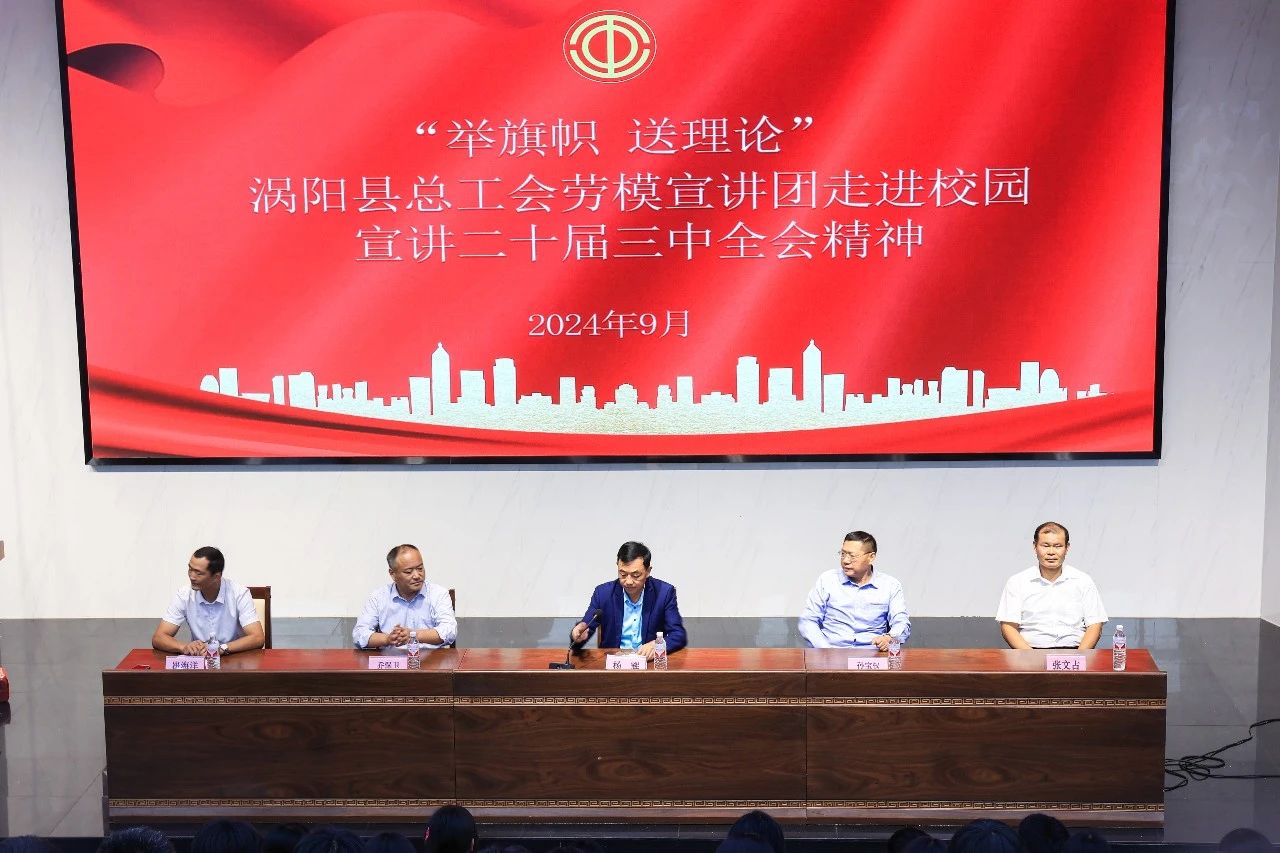 9月27日,渦陽縣總工會勞模宣講團走進校園宣講二十屆三中全會精神。安徽正宇集團全國五一勞動獎獲得者、安徽省勞動模范張文占作為代表進行宣講,助力學子深入學習貫徹習近平新時代中國特色社會主義思想和黨的二十屆三中全會精神。