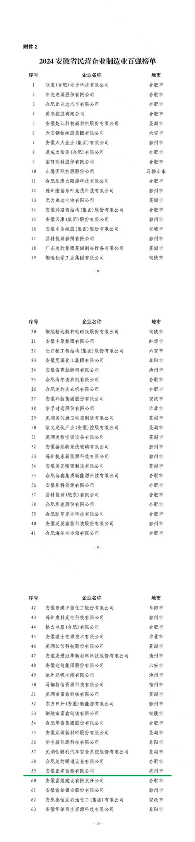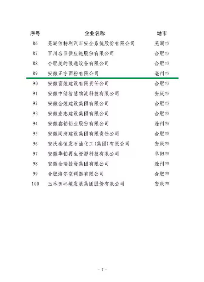 喜訊丨安徽正宇集團旗下正宇面業榮登“2024安徽省民營企業百強”榜單